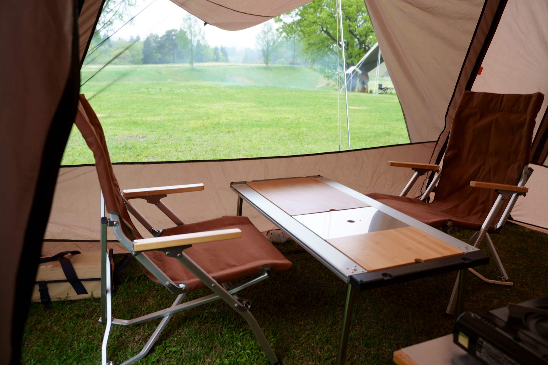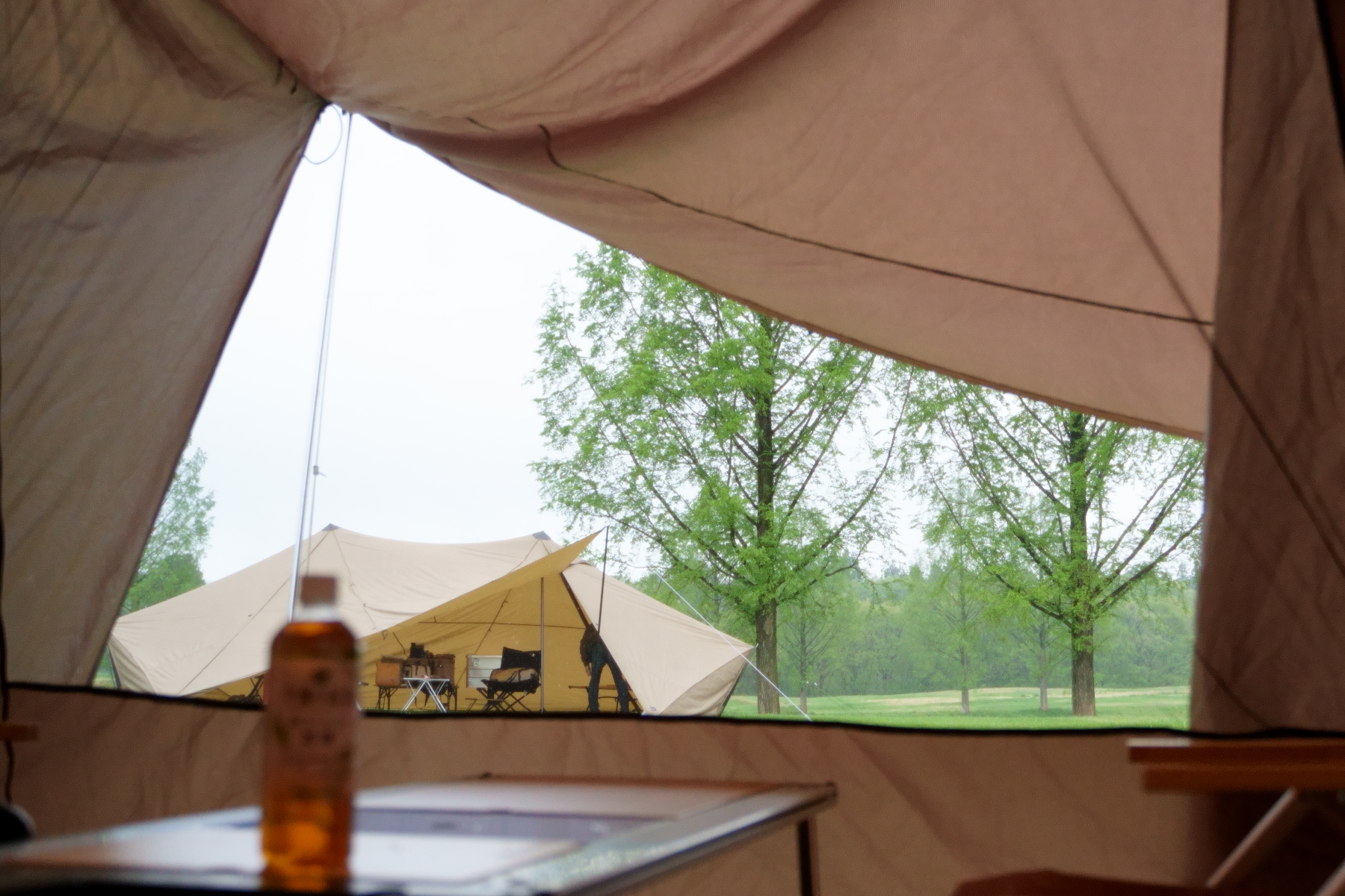 またもや雨の中のテント設営でした。