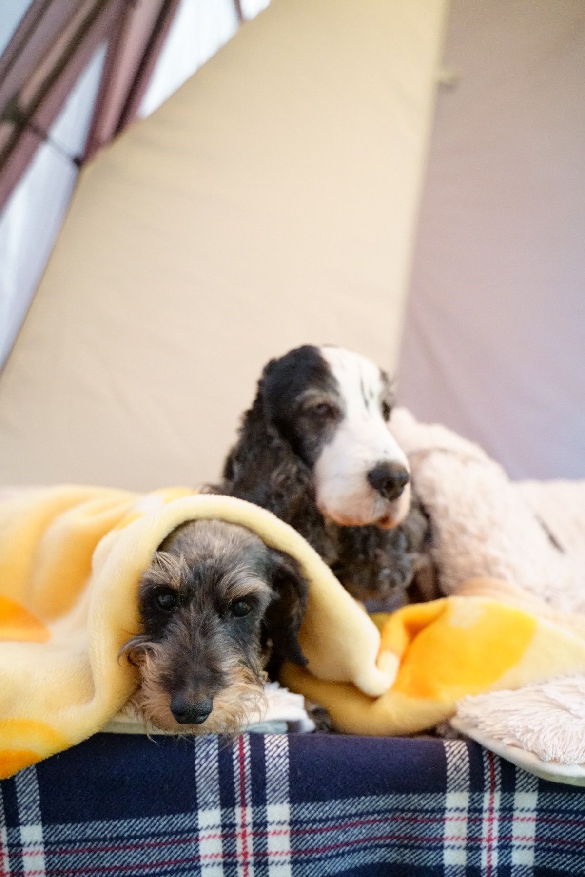 デイジーはガタガタ震えちゃっているので、毛布の中で。