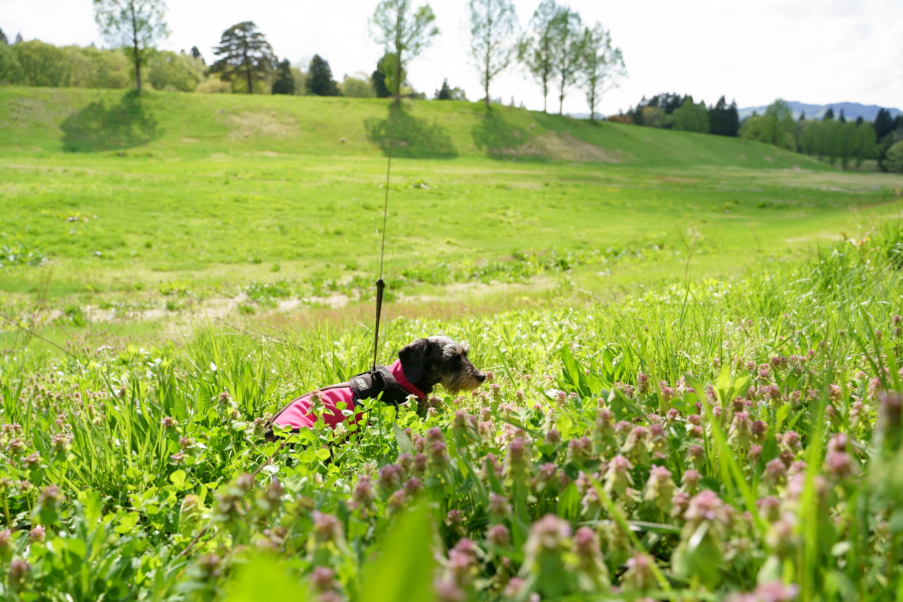 早速お散歩に出ますが、雨降りの後なので地面はびちょびちょ。