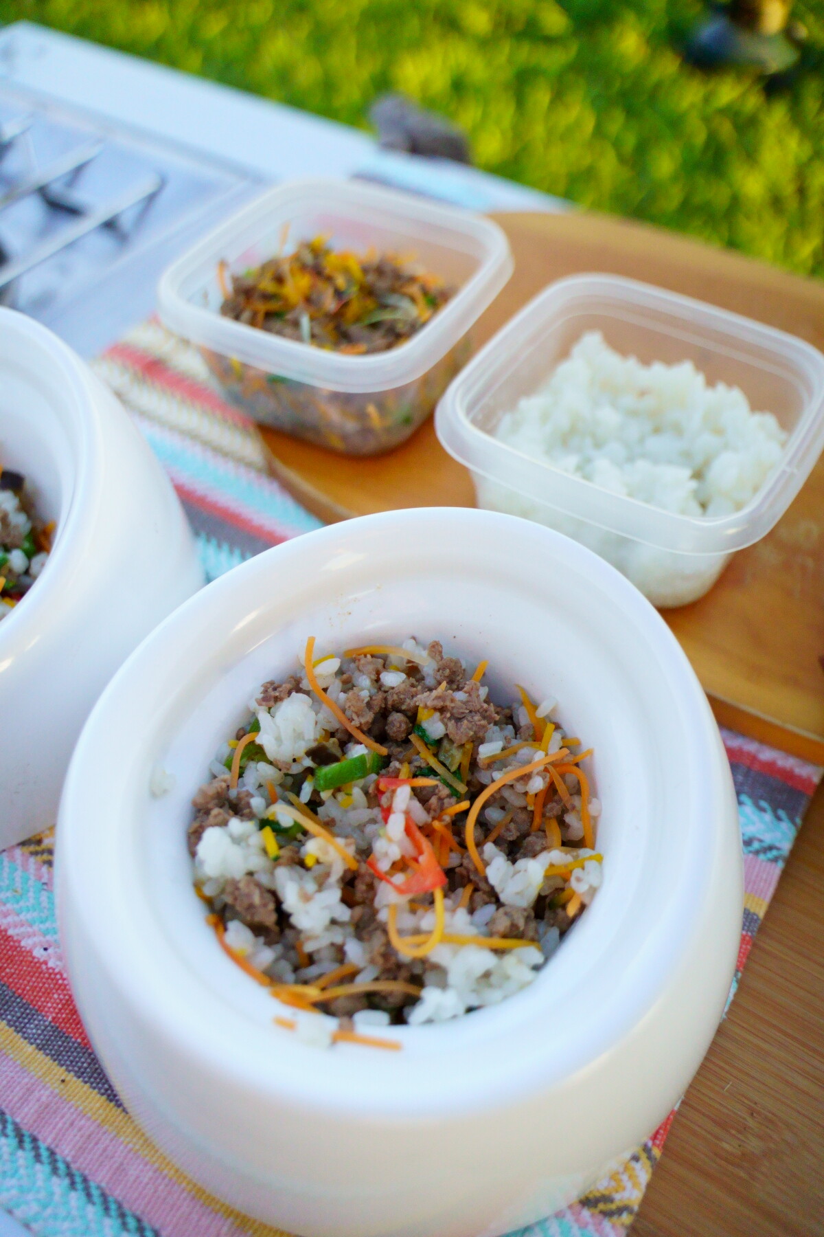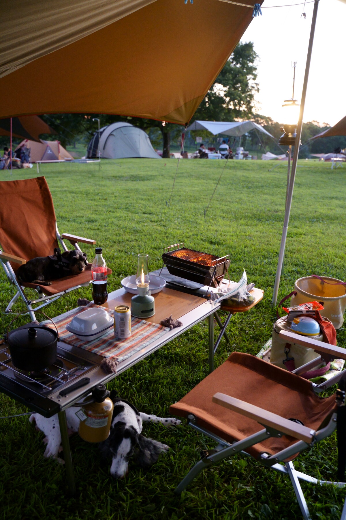 キャンプ場に戻ったらすぐにワンコ達のご飯の準備。