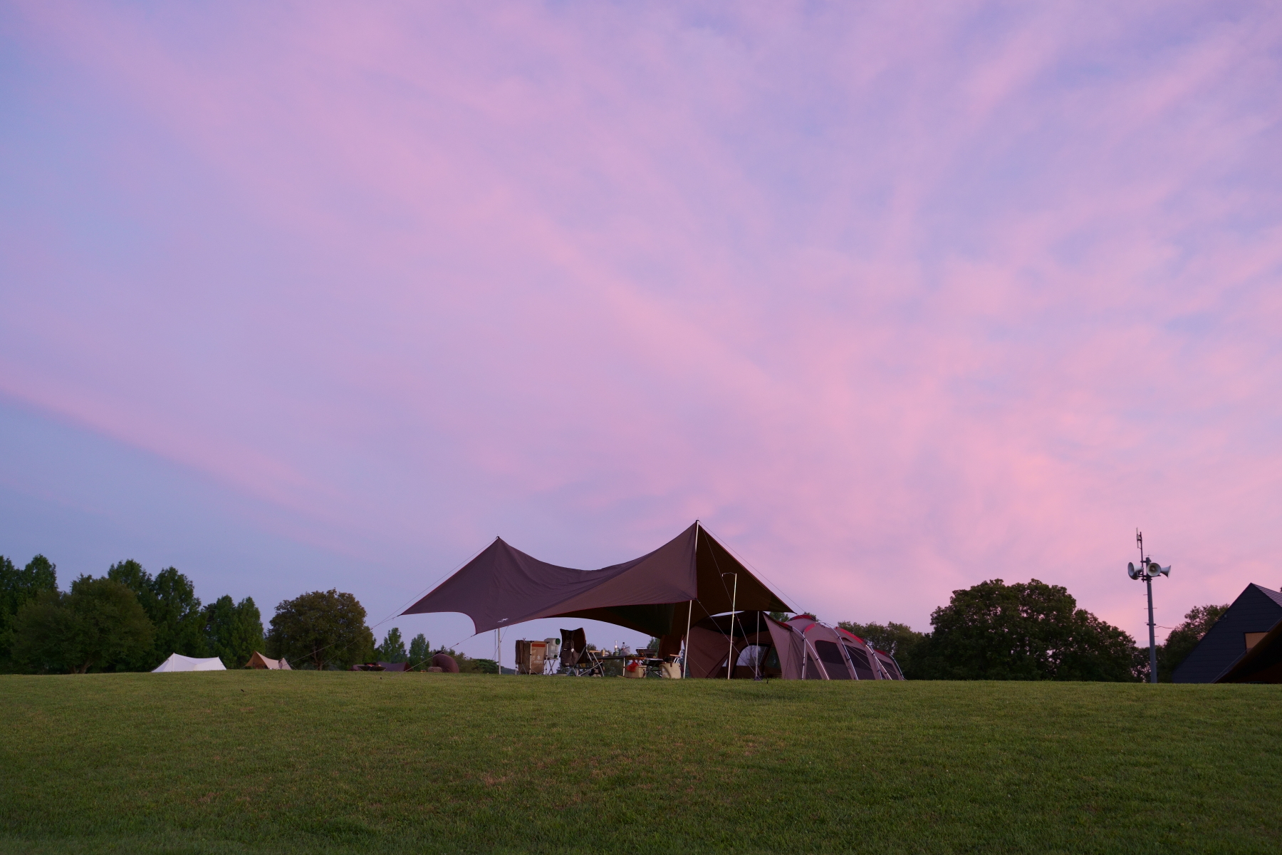 朝靄のキャンプ場。