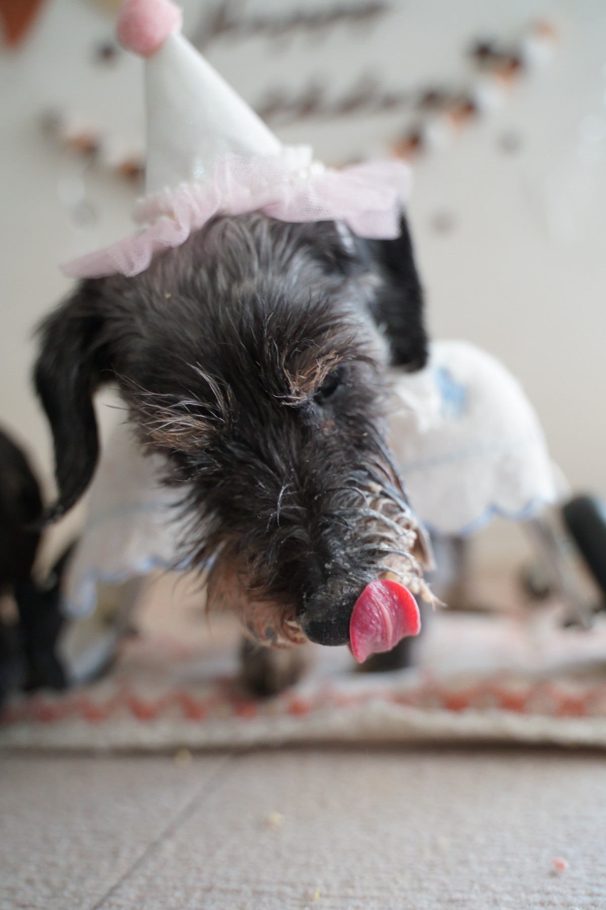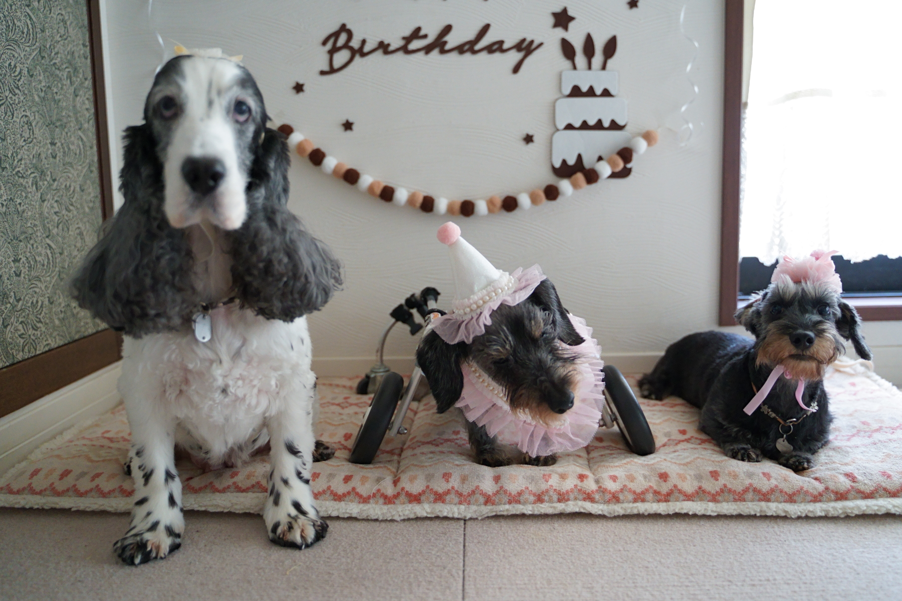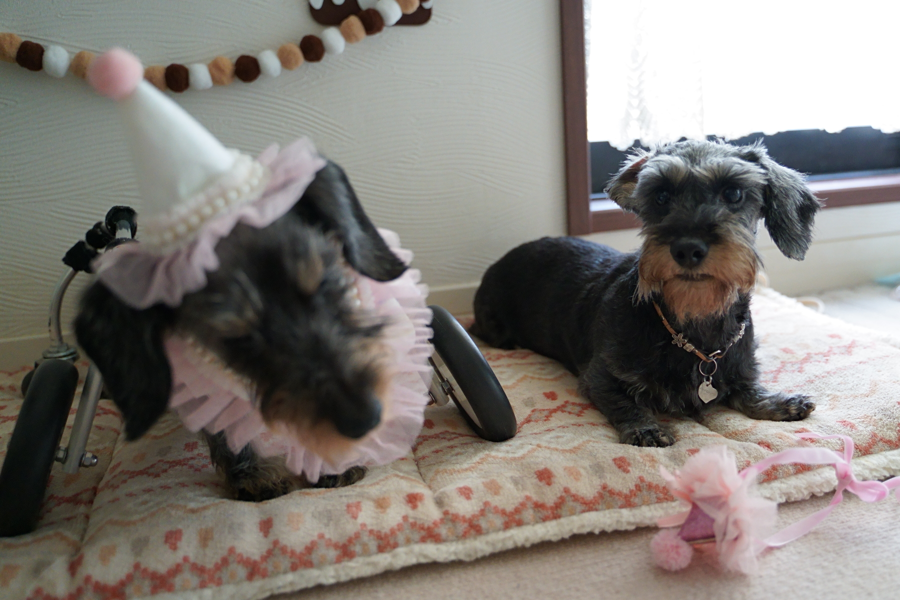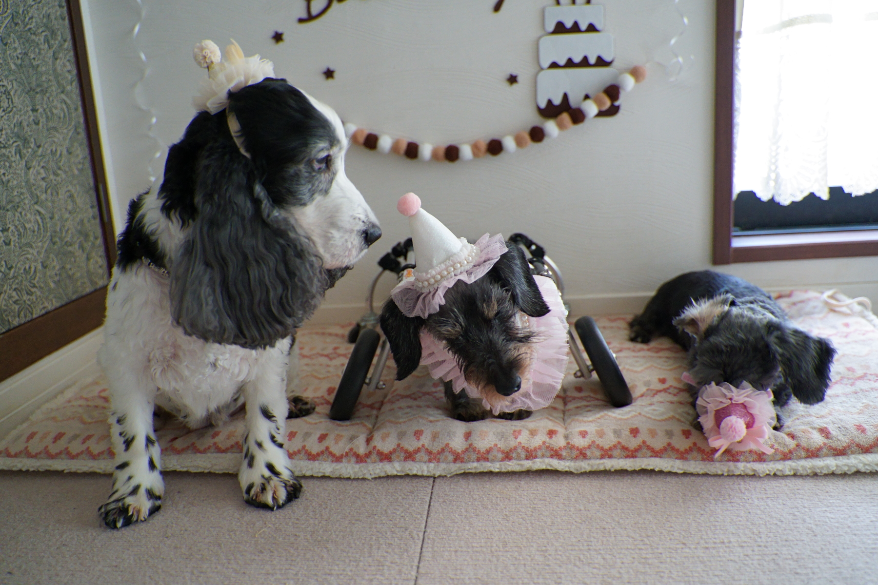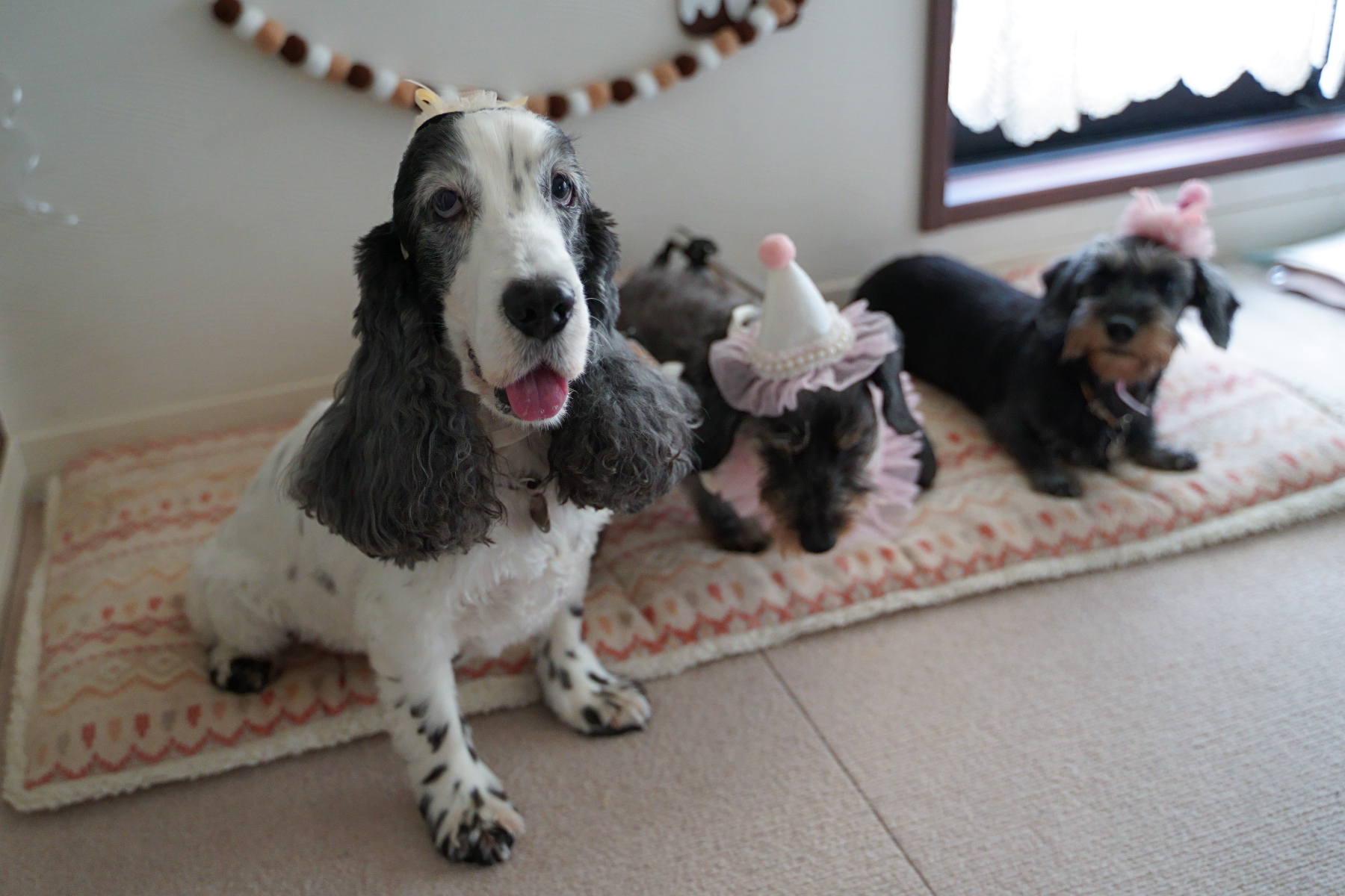 ワンコ達にはパーティー帽を被らせて♡
