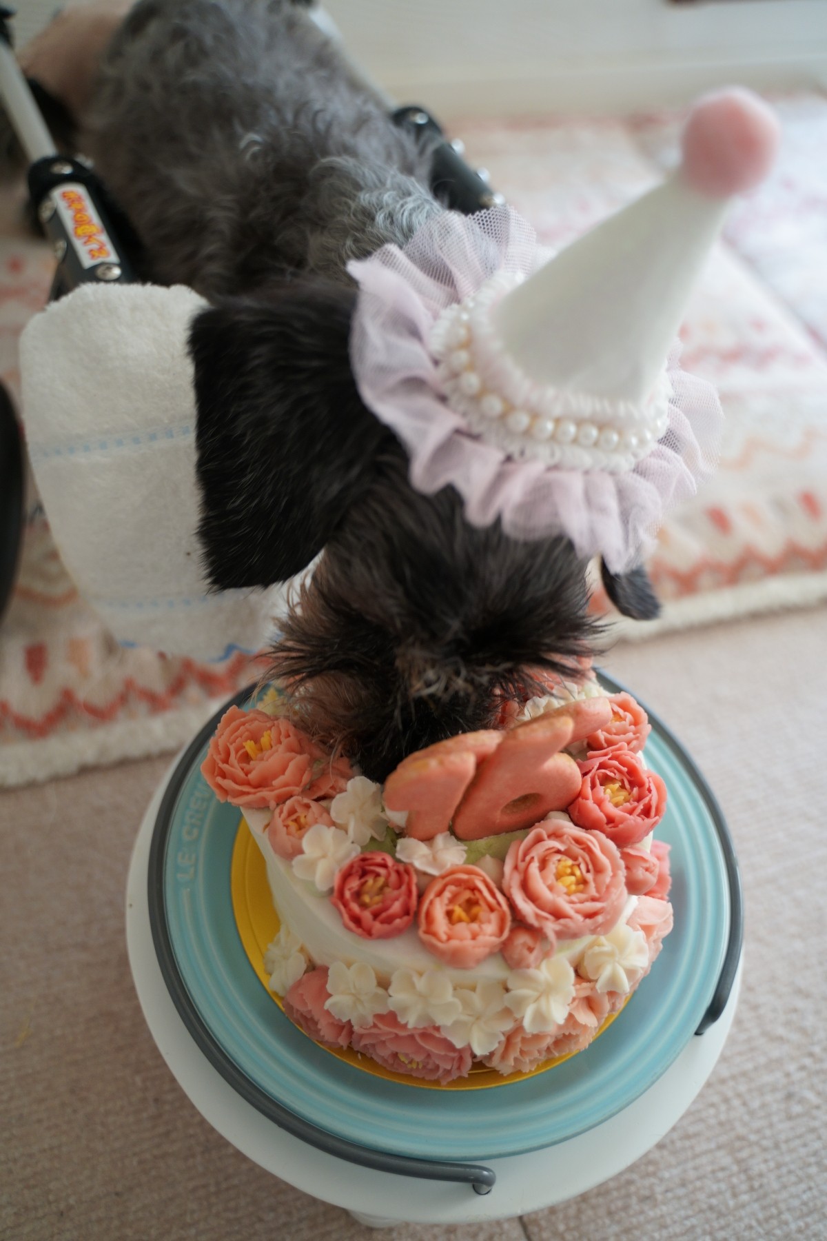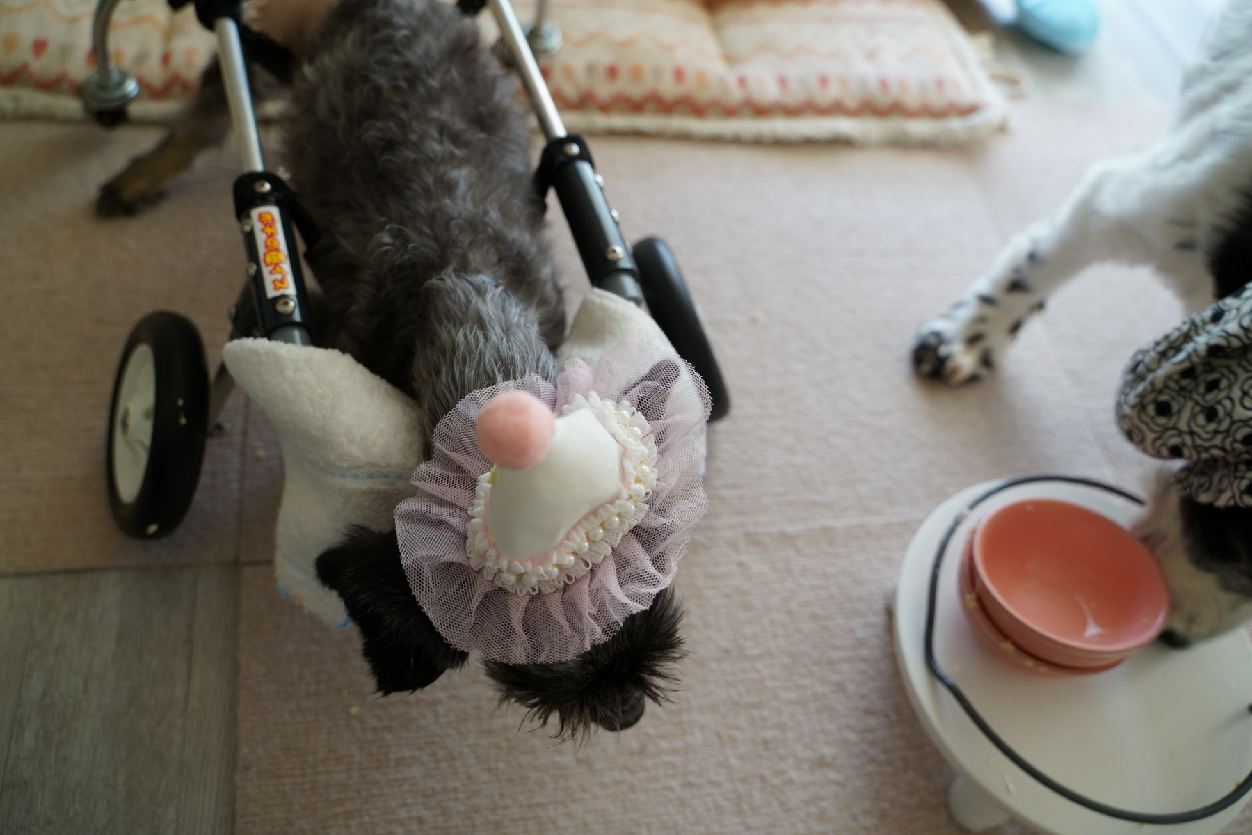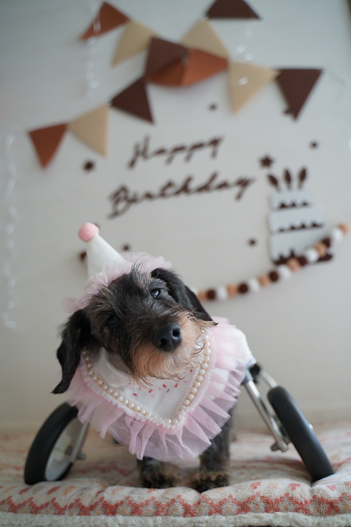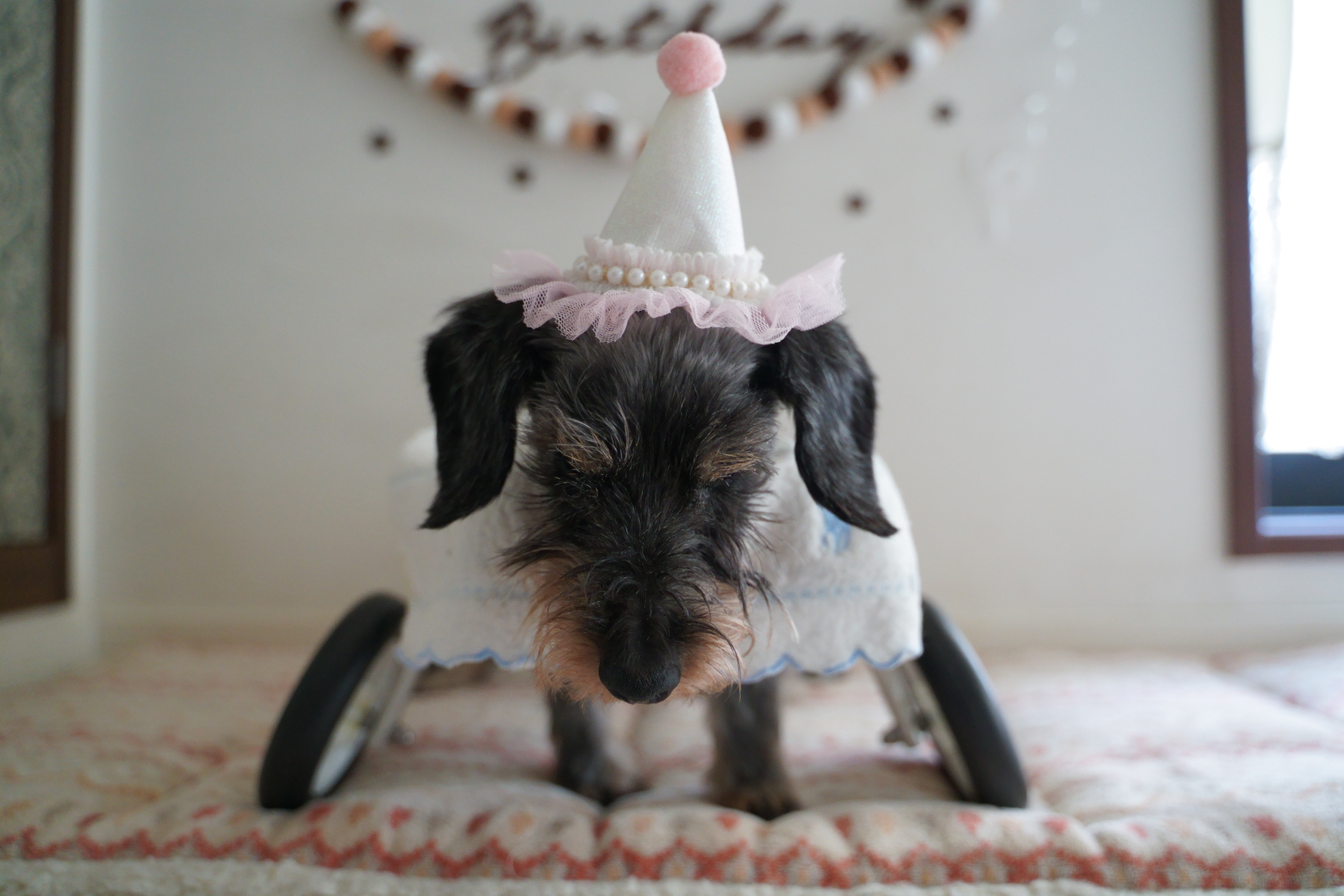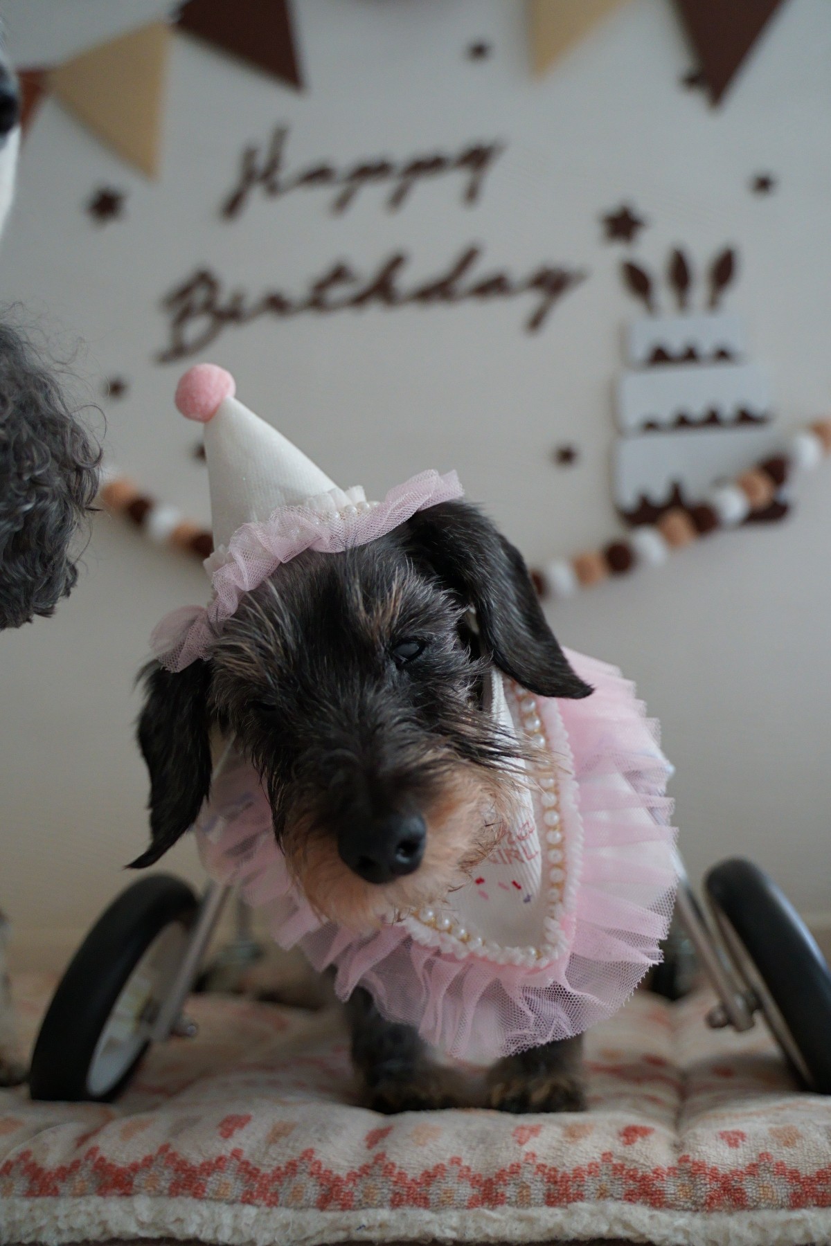 ワンコ達にはパーティー帽を被らせて♡