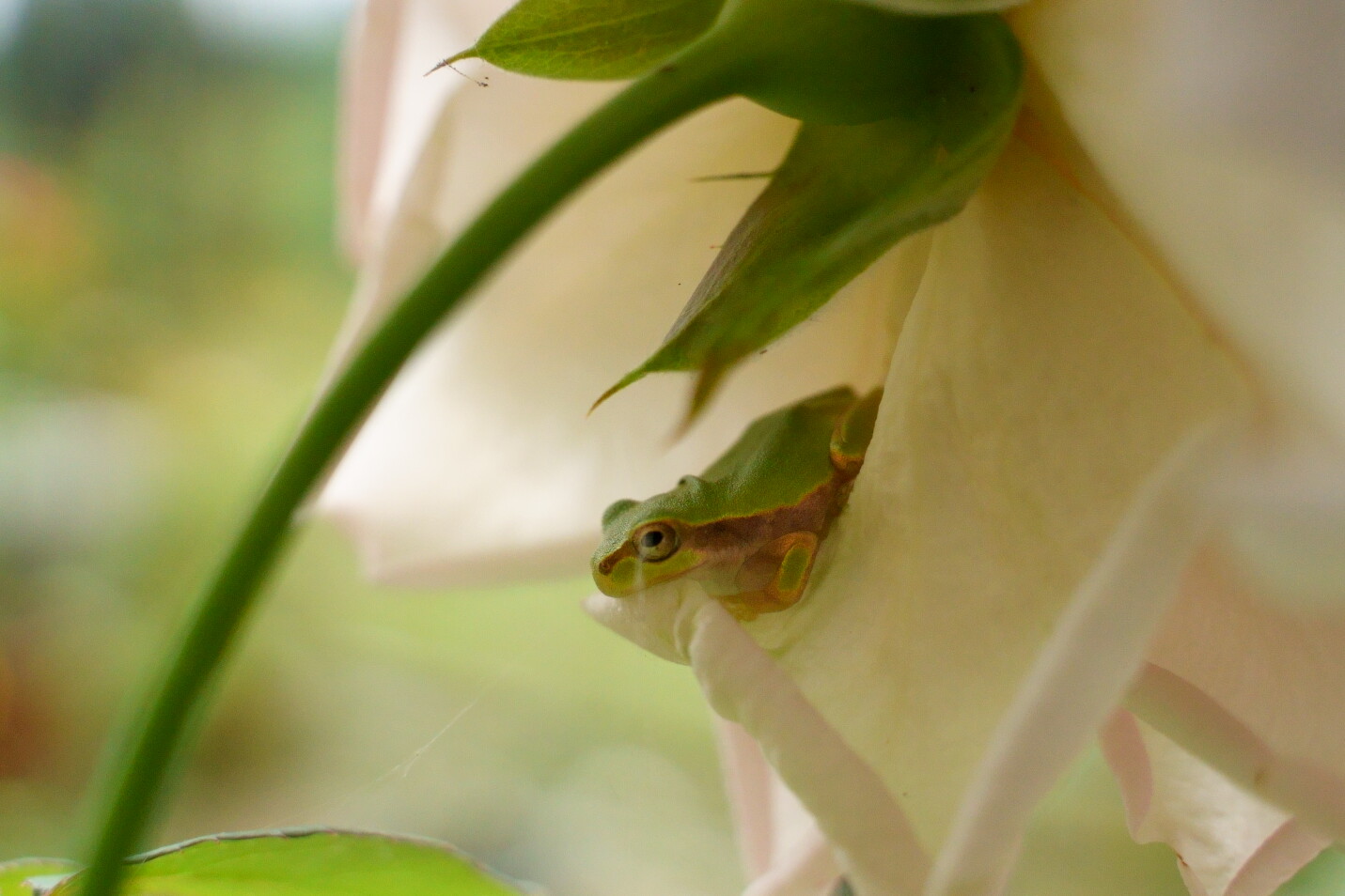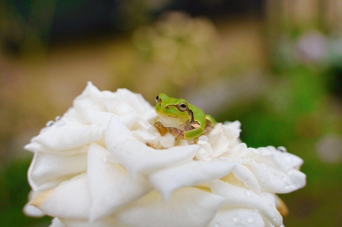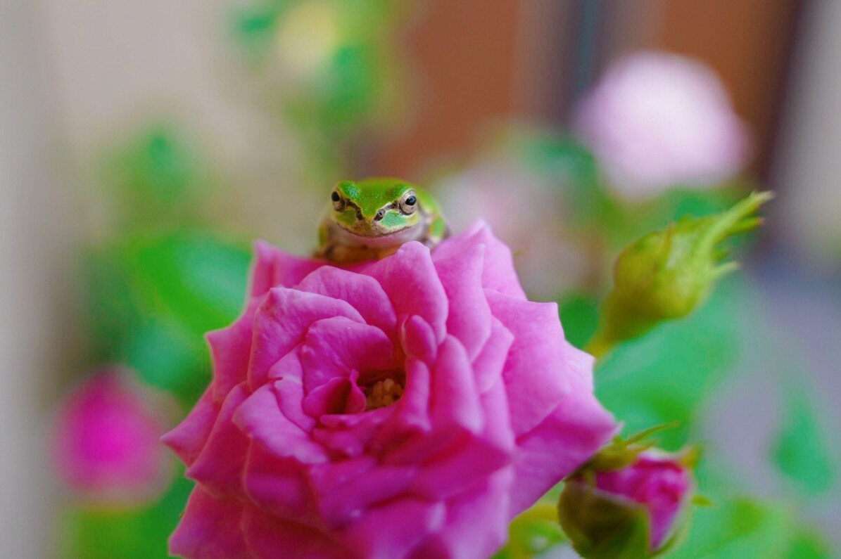 今年もケロ王子がバラのベッドで休んでいるところを見られて幸せ〜♪