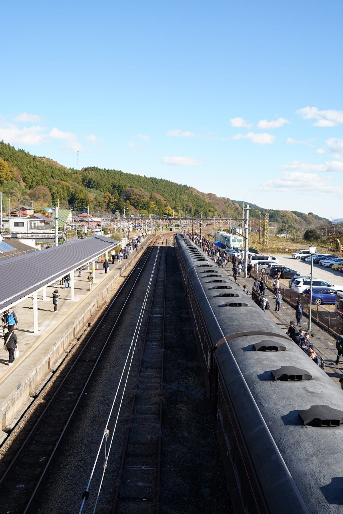 乗り鉄、撮り鉄さん達が集まってものすごい人・人・人。