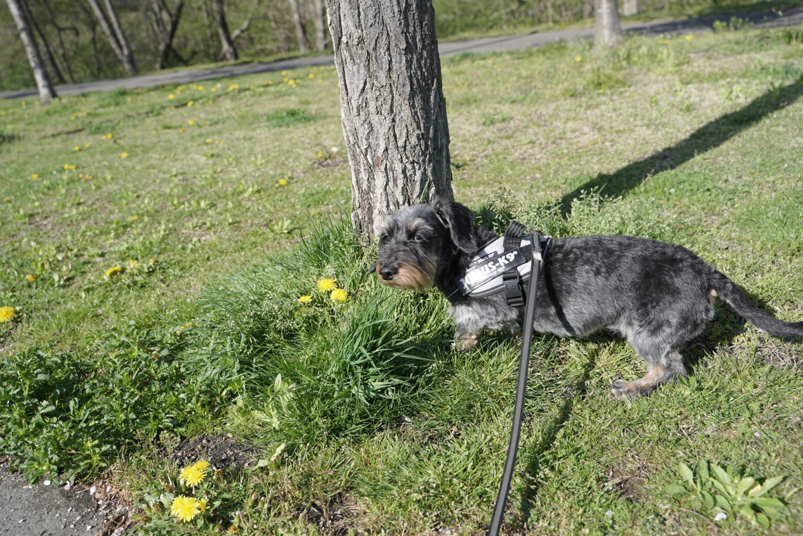 最近、家の敷地から出たがらないデイジーは庭でぶらぶらするばかり。今日は久しぶりの公園でたくさん歩きましたよ。