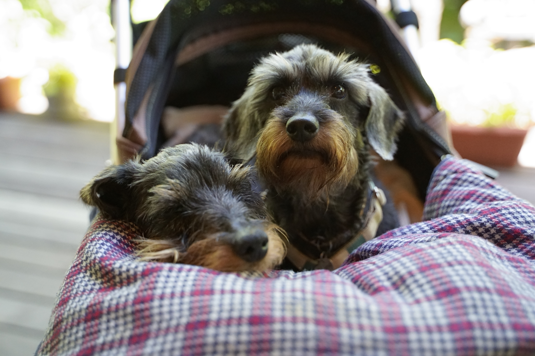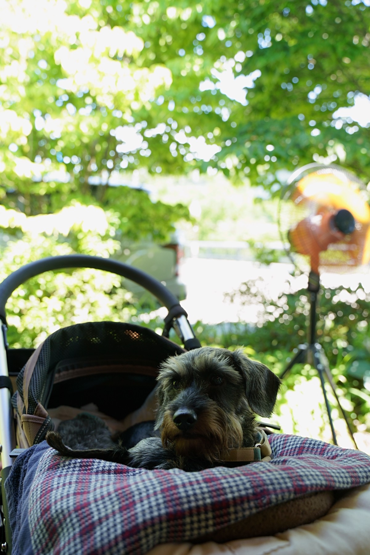 デイジーとブランは一緒にバギーに入っているので余計に暑かったね。