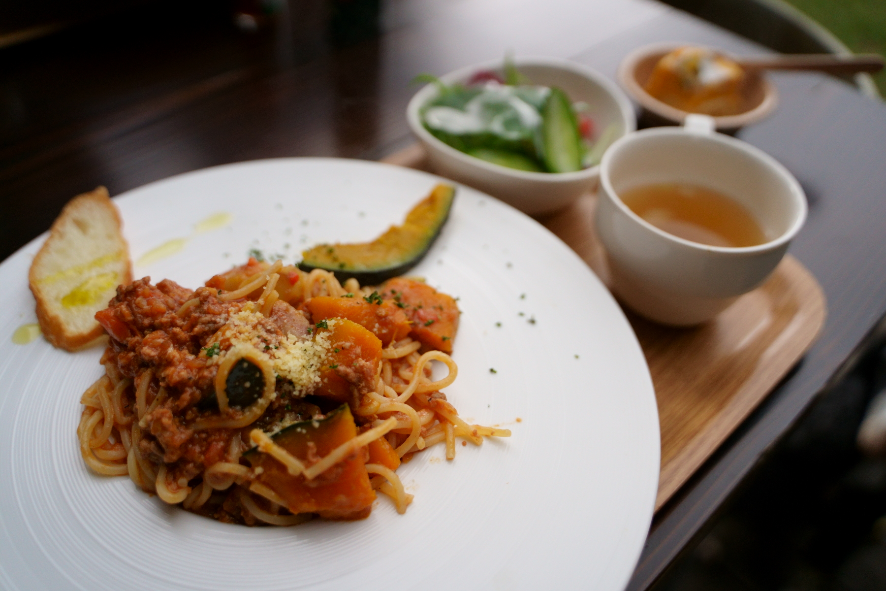 ランチは、かぼちゃと栗のボロネーゼとカルボナーラ。