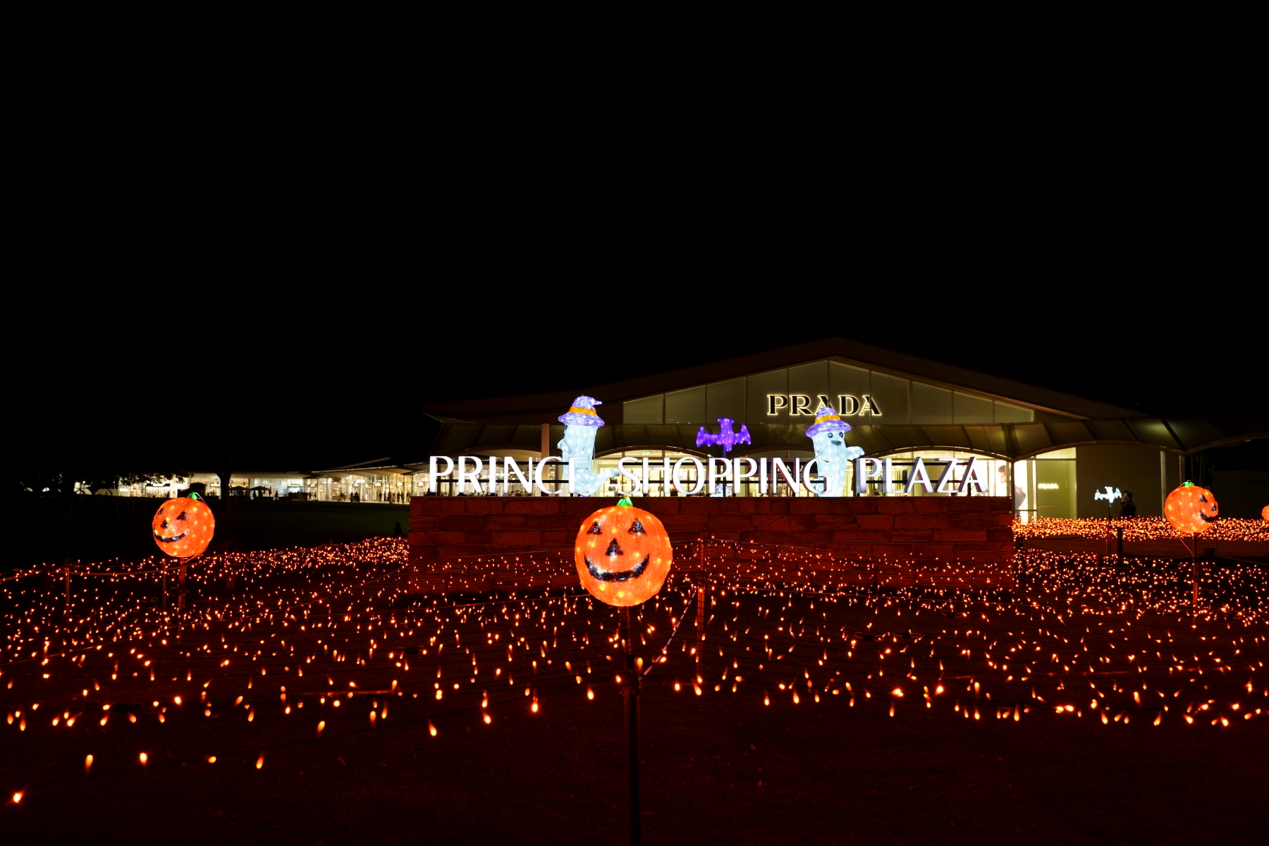 ハロウィンのイルミネーションが夜の暗闇に映えてきれいでした。